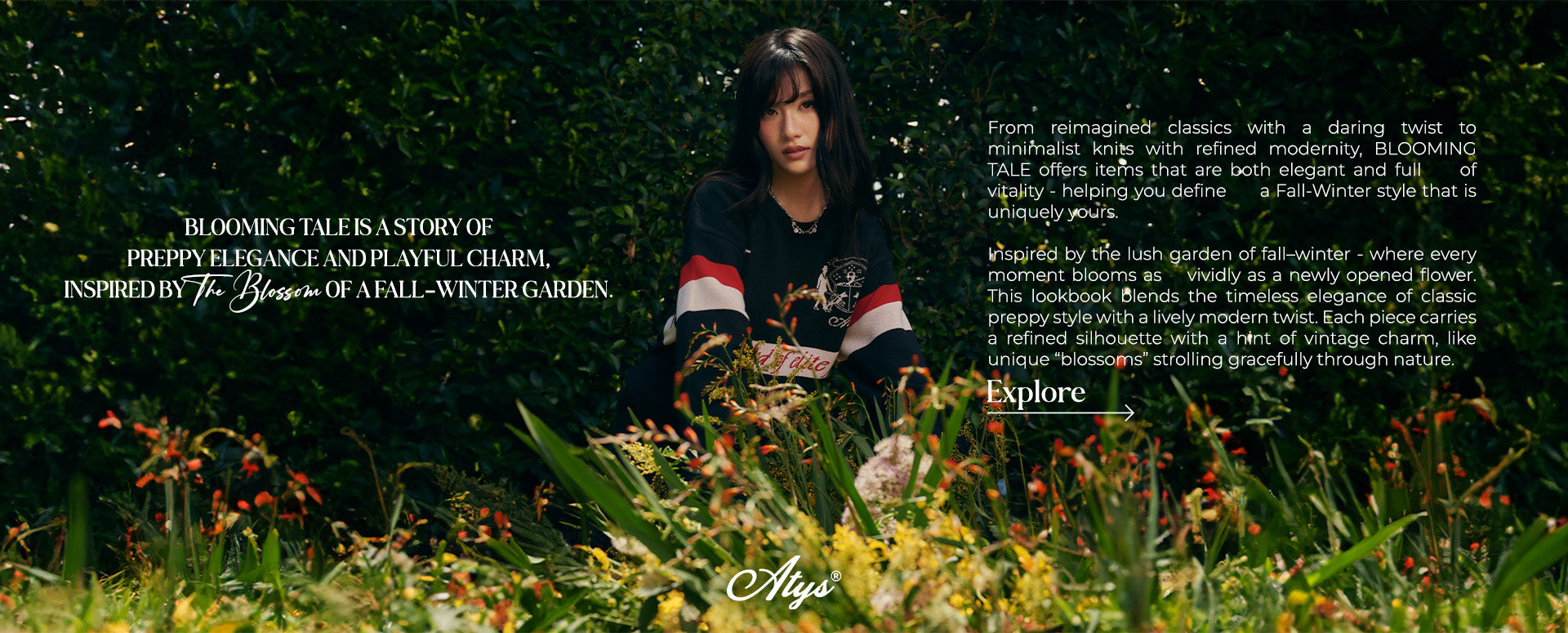 From reimagined classics with a daring twist to minimalist knits with refined modernity, BLOOMING TALE offers items that are both elegant and full of vitality - helping you define a Fall-Winter style that is uniquely yours.