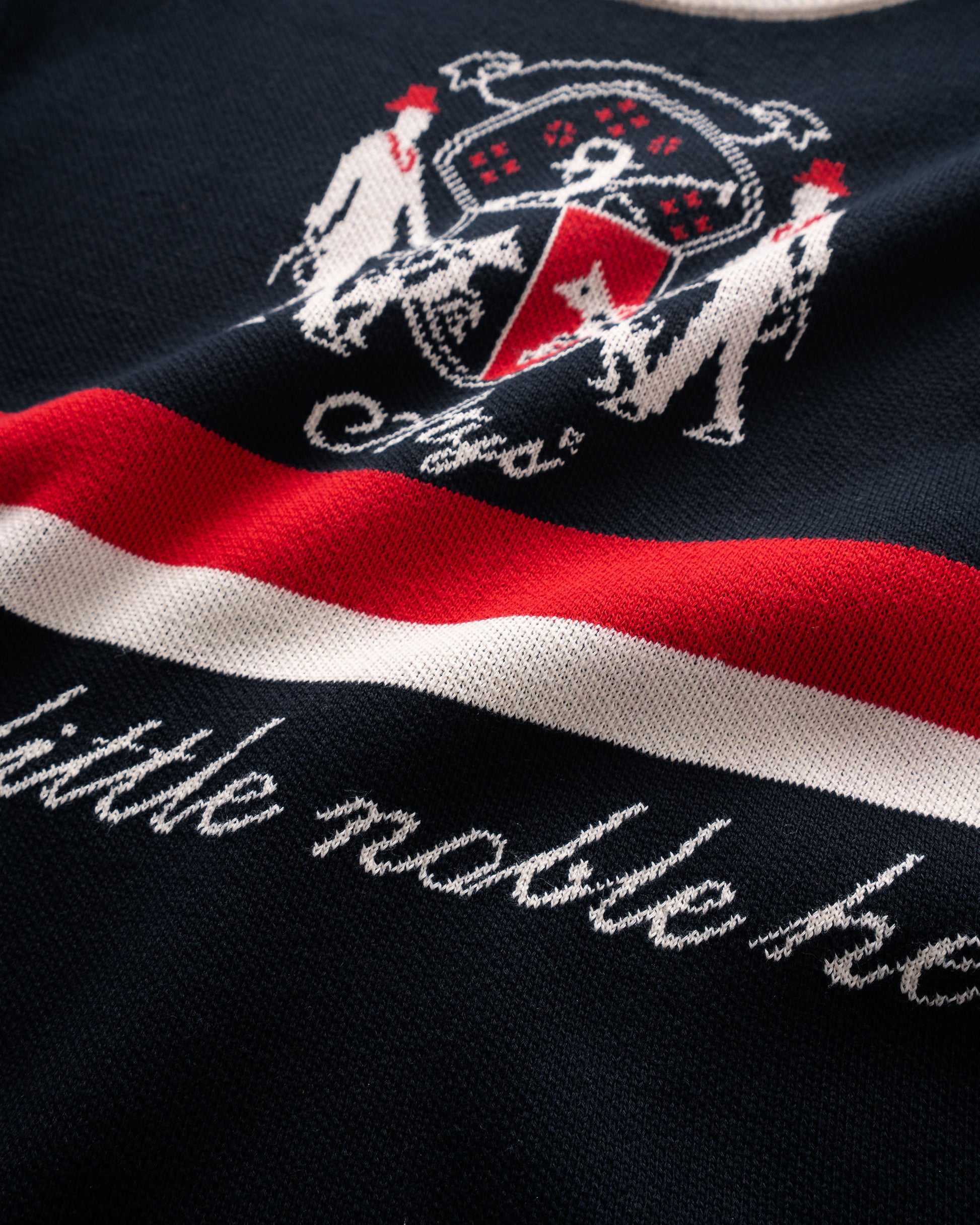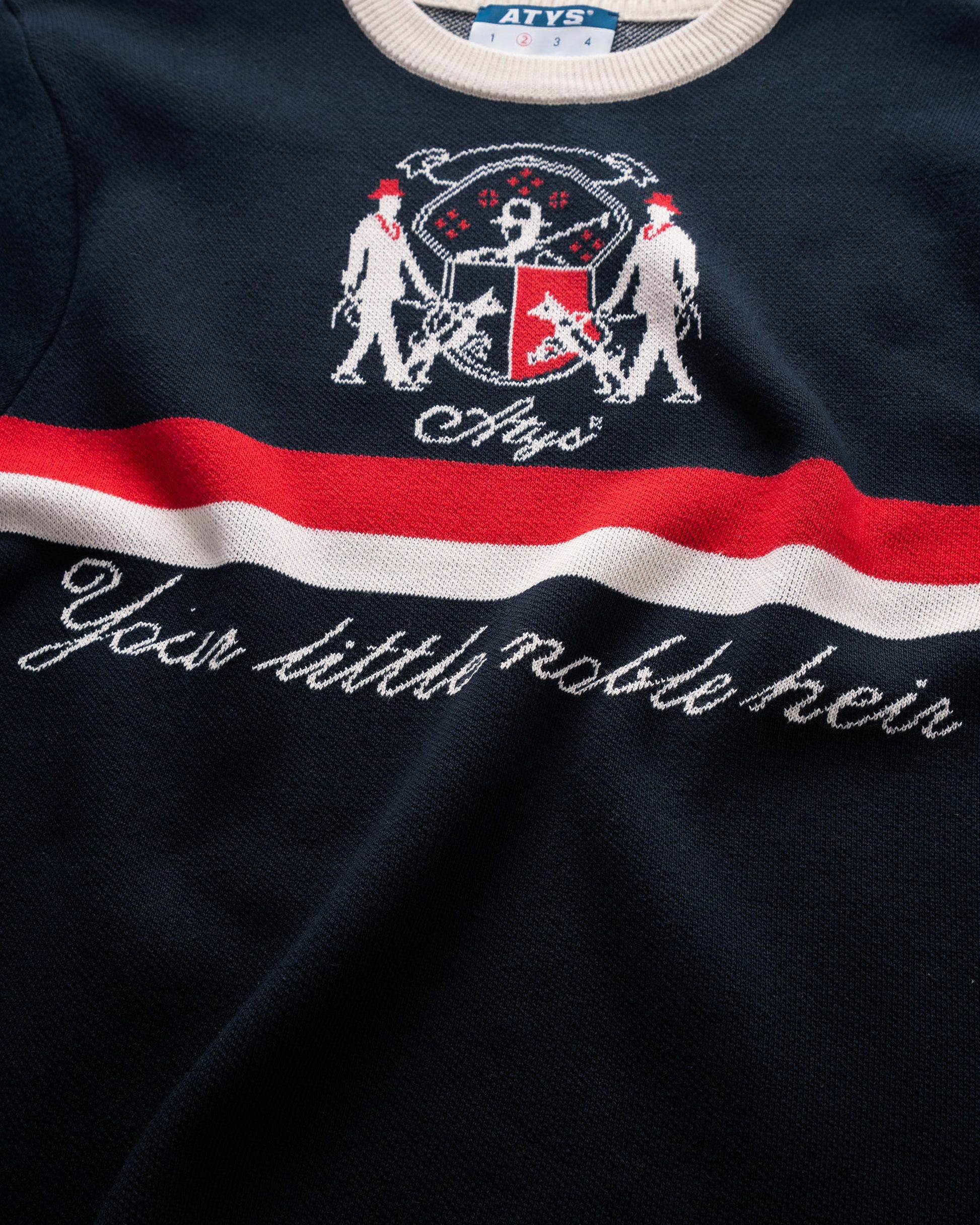 Two contrasting stripes running across the body, evoking a touch of classic style reimagined with a modern spirit. The embroidered regal crest logo paired with the phrase “Your little noble heir” adds a unique character, making the piece truly stand out.