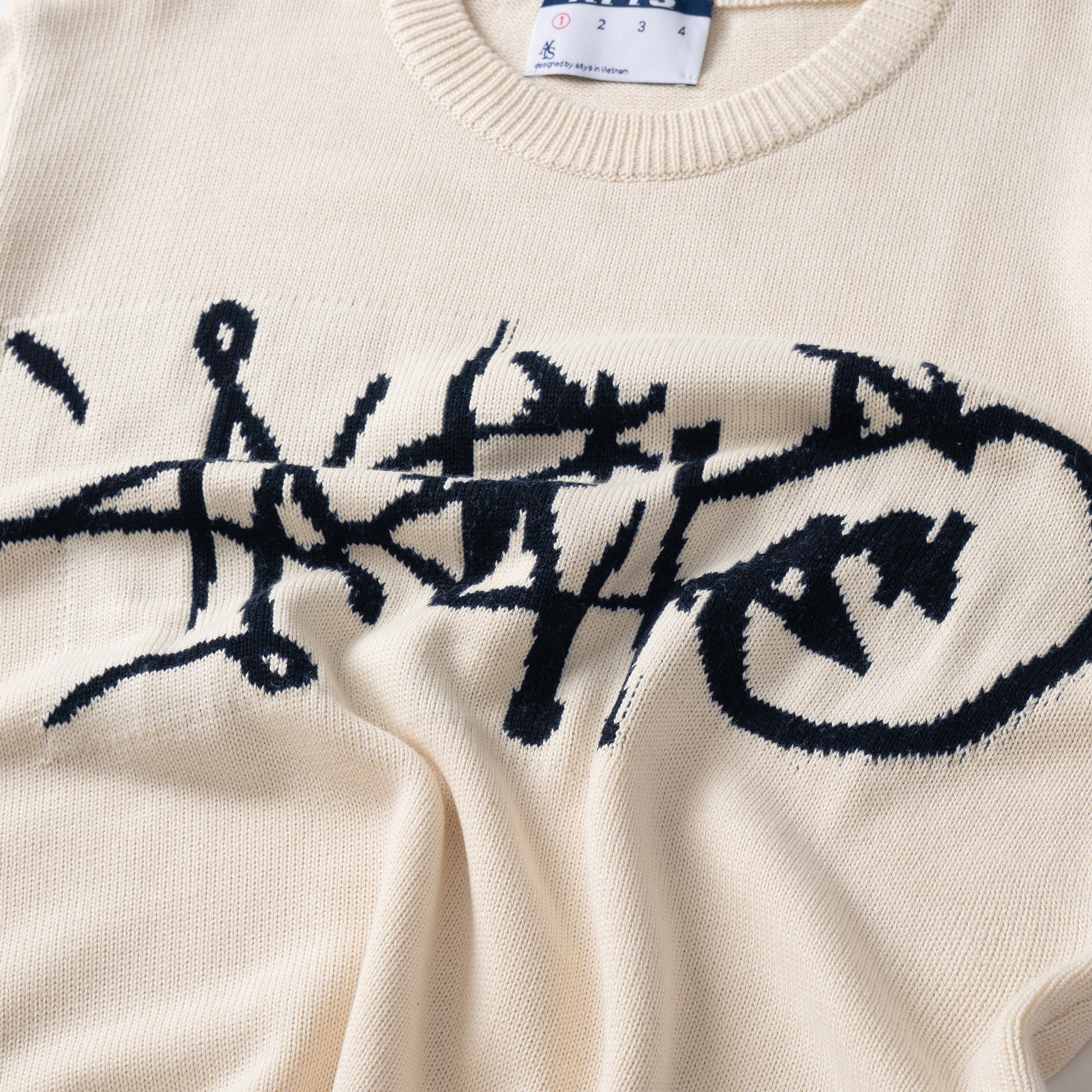 ATYS® SIGNATURE LOGO RIPPED KNIT COTTON SWEATER