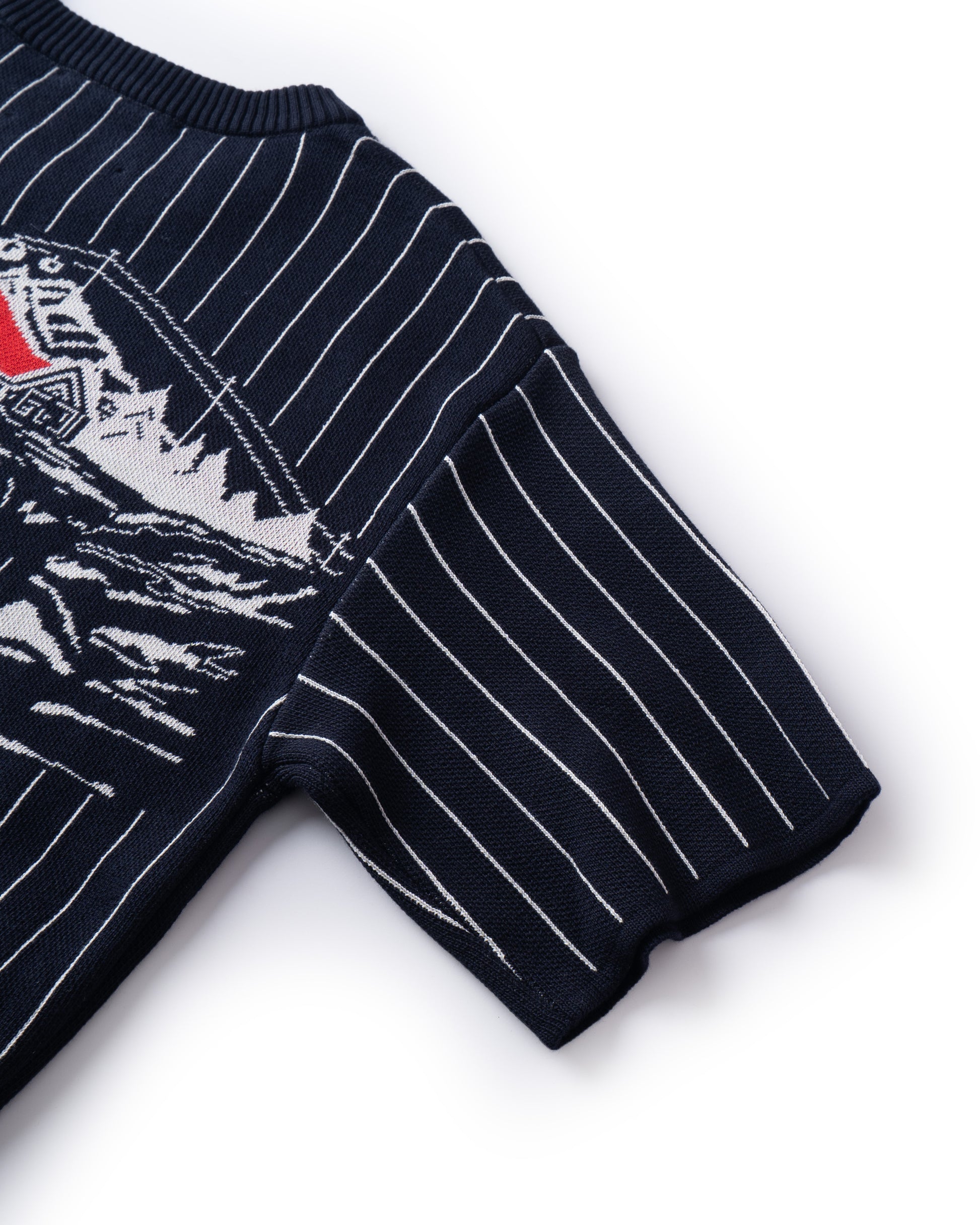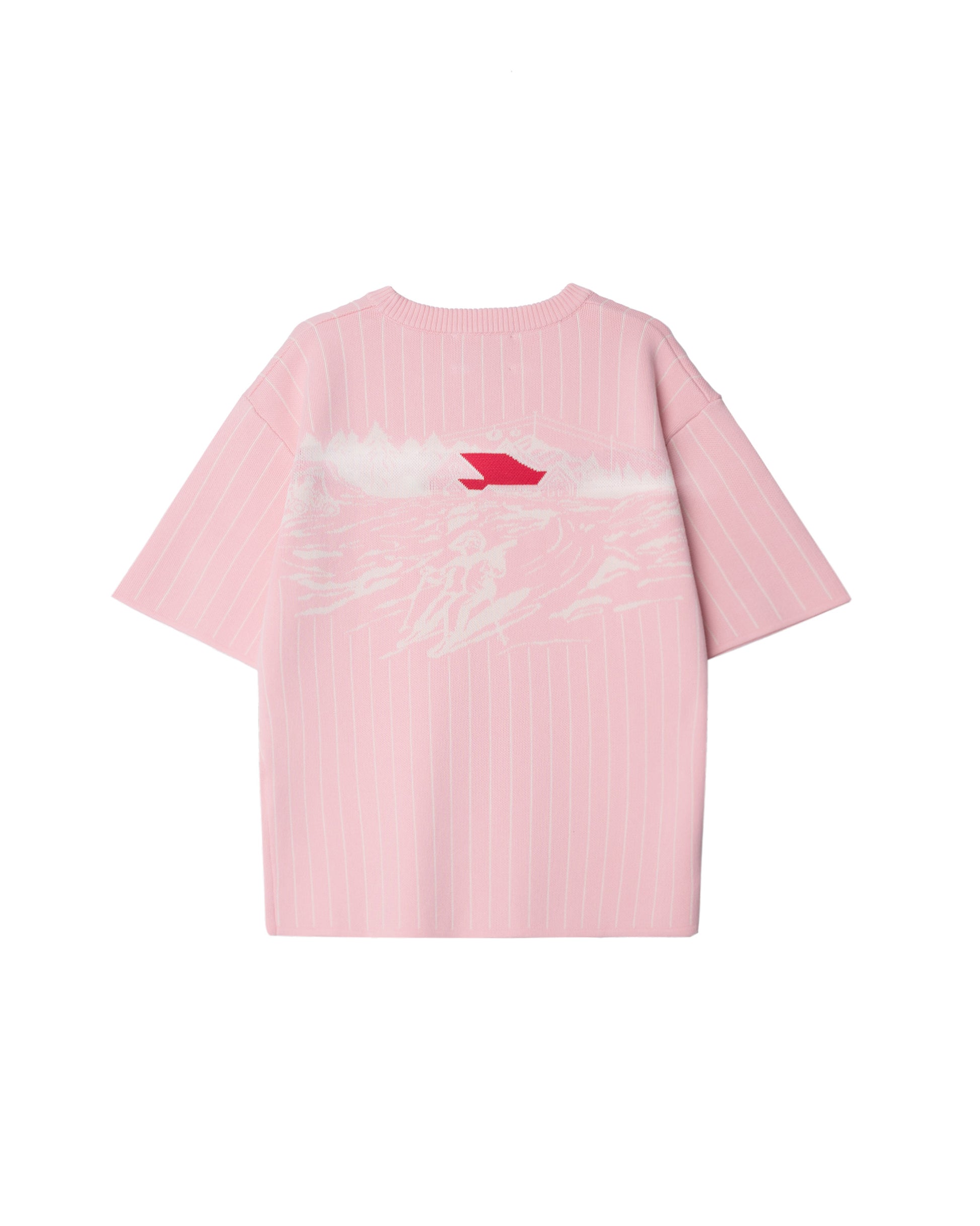 The short-sleeved knitted t-shirt features an elegant vertical stripe design, and meticulously machine-woven patterns, creating a classic and modern look. Its well-fitted silhouette enhances the body shape while ensuring maximum comfort. Made from cotton knit with advanced weaving technology, the fabric is tightly knit to increase thickness while remaining soft, breathable, and effectively retaining warmth. The intricate pattern beautifully captures a serene yet lively natural landscape, evoking nostalgia for a delightful winter season.