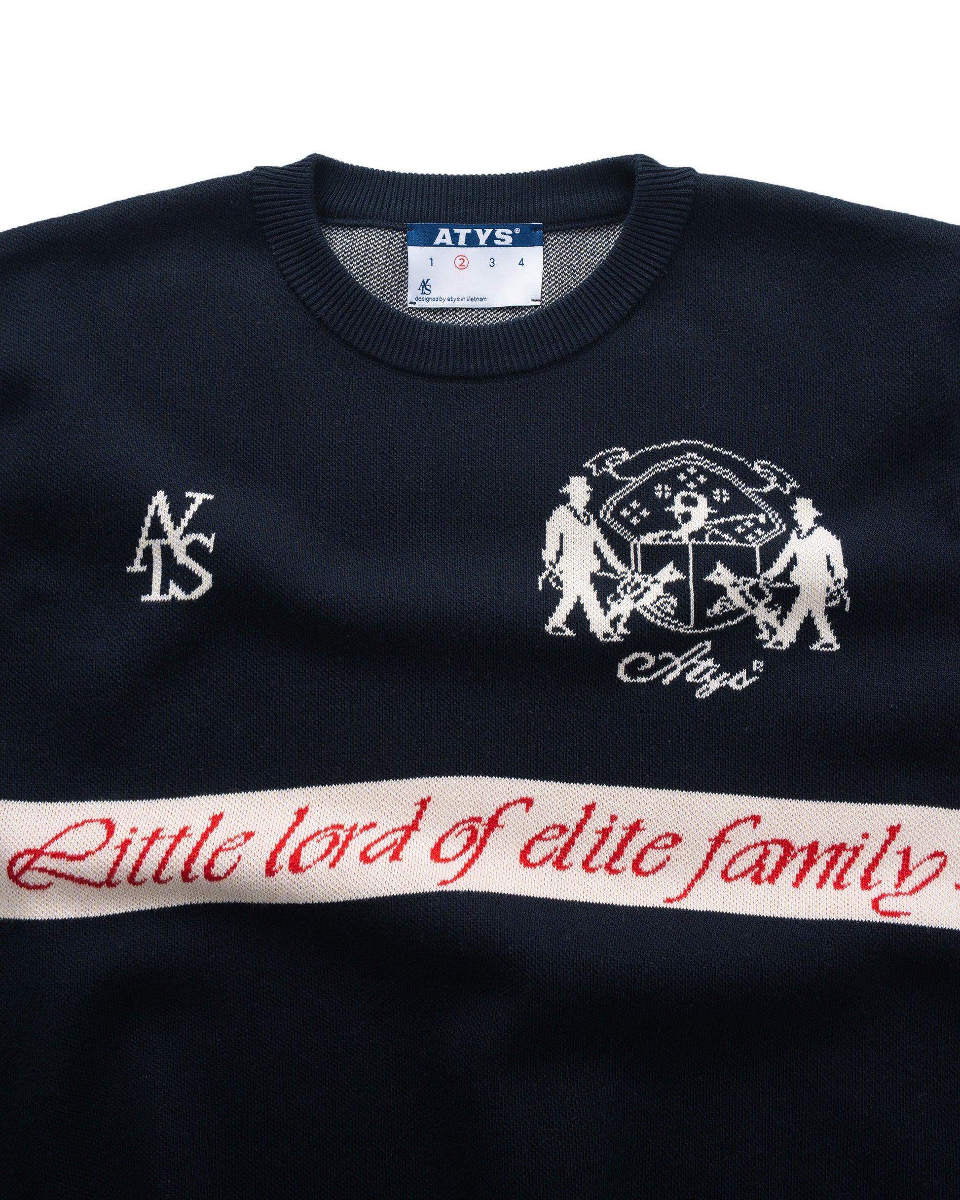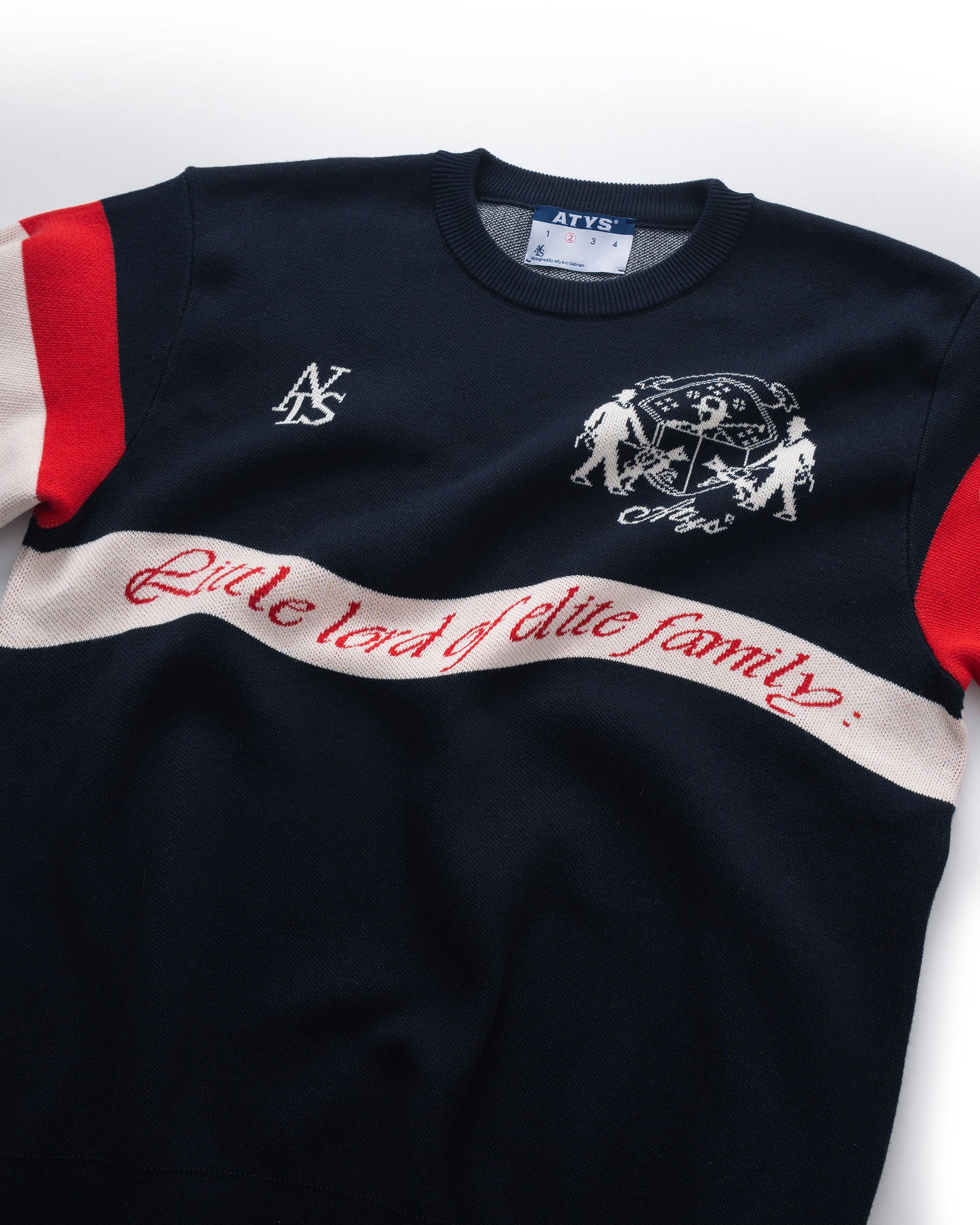 The bold chest stripe, paired with the embroidered crest and the phrase “Little lord of elite family”, evokes a refined, classic vibe with a modern twist. The embroidered signature logo on the left chest adds a subtle yet distinctive touch, affirming ATYS’s unique brand identity.